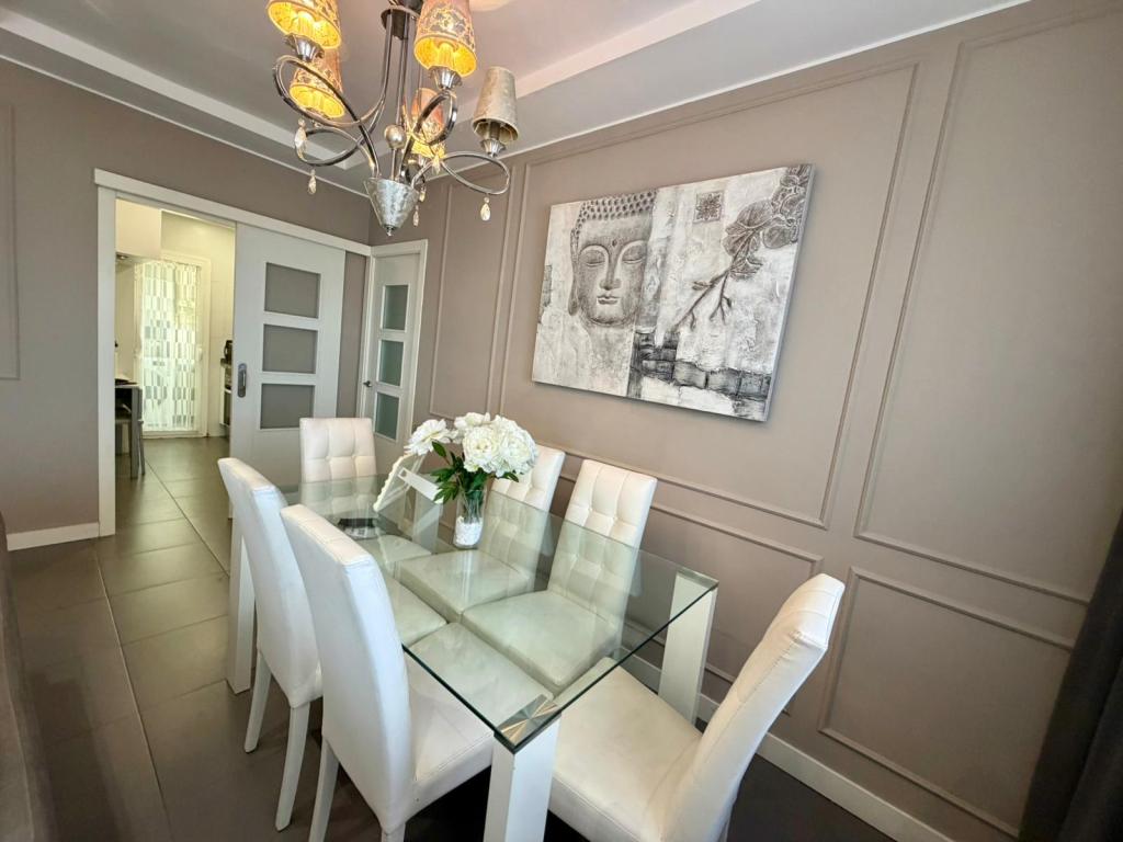 La vivienda esta equipada con carpintería exterior de madera y aluminio, interiores lacados en blanco. Suelo porcelánico, calefacción gas natural con radiadores y 1 Split de aire acondicionado con bomba de calor.